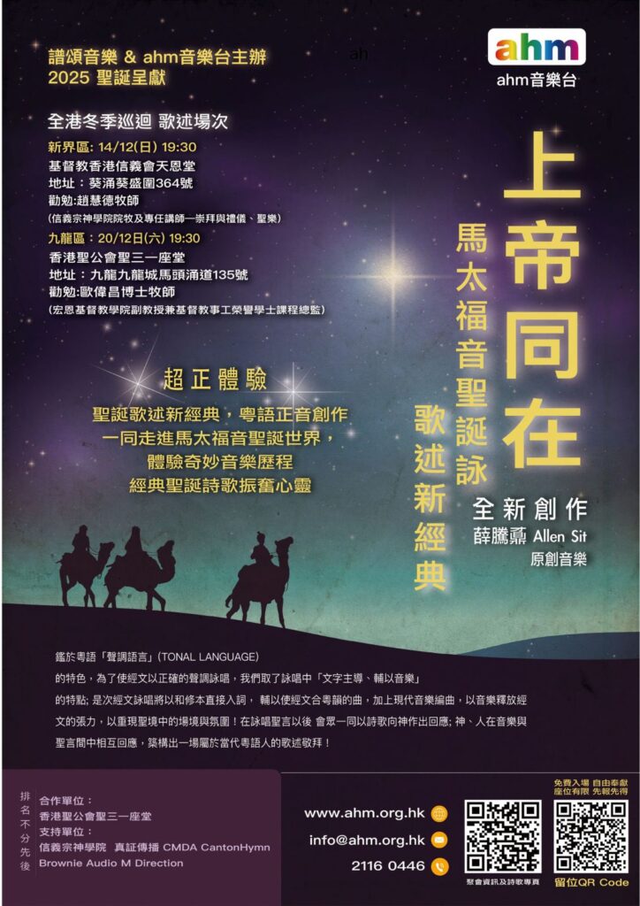 為迎接教會年甲年的來臨,ahm於 12 月舉辦「馬太福音聖誕詠」,在本港 2 間教會巡迴公演,述說主耶穌誕生、福音臨到的事跡。