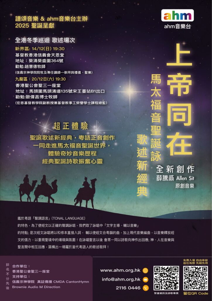 為迎接教會年甲年的來臨,ahm於 12 月舉辦「馬太福音聖誕詠」,在本港 2 間教會巡迴公演,述說主耶穌誕生、福音臨到的事跡。